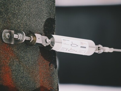 Амортизатор закрытого типа оснащен цветовым индикатором натяжения, что исключает возможность ошибки при монтаже анкерной линии.