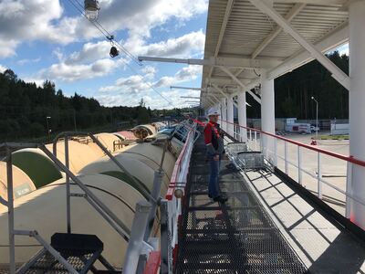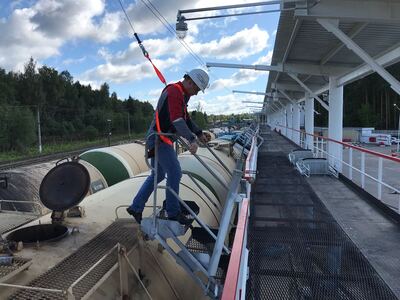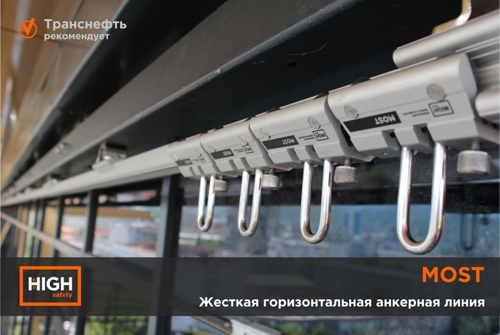Горизонтальная жесткая анкерная линия MOST компании HIGH SAFETY - универсальное решение для всех видов работ: работа на автоцистернах и жд вагонах,- слив, налив, взятие проб, проведение замеров, работы на крыше, работы в положении сидя при обслуживании фасадов промышленных и городских зданий (торговых центров, жилых домов, бизнес-центров).