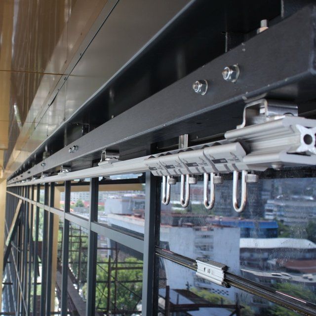 Жесткие линии оборудованы рельсом. Он может быть прямым или изогнутым, здесь все зависит от профиля поверхности, на которой будет крепиться страховочная система. По рельсу будут перемещаться страховочные тросы на креплениях, снабженные стопорами и элементами амортизации.