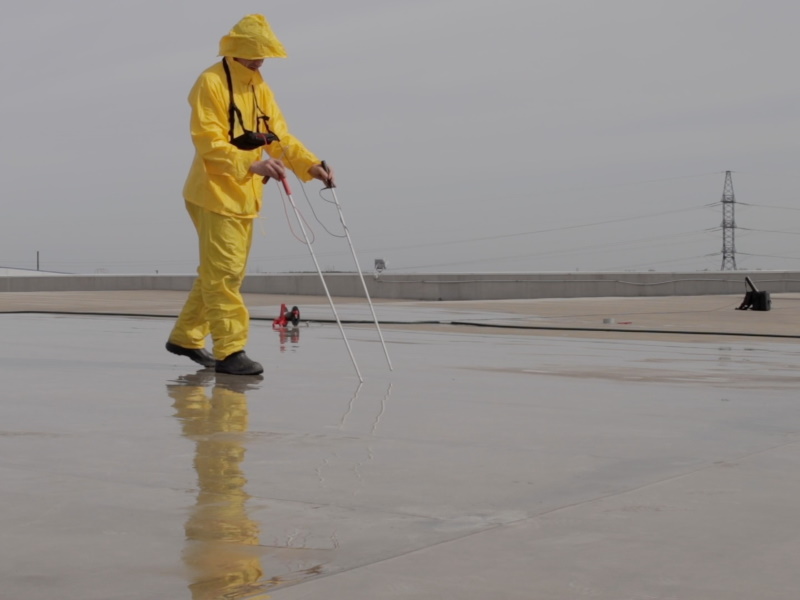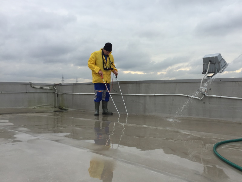 1) Инструментальное обследование - кровельного покрытия, метод неразрушающего контроля «Электро-искровое дефектоскопирование» с нанесением отметок дефектов на кровельном покрытие.