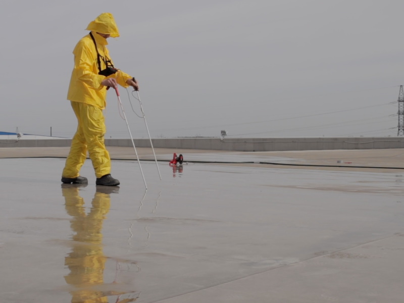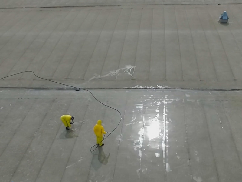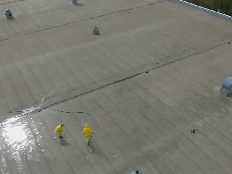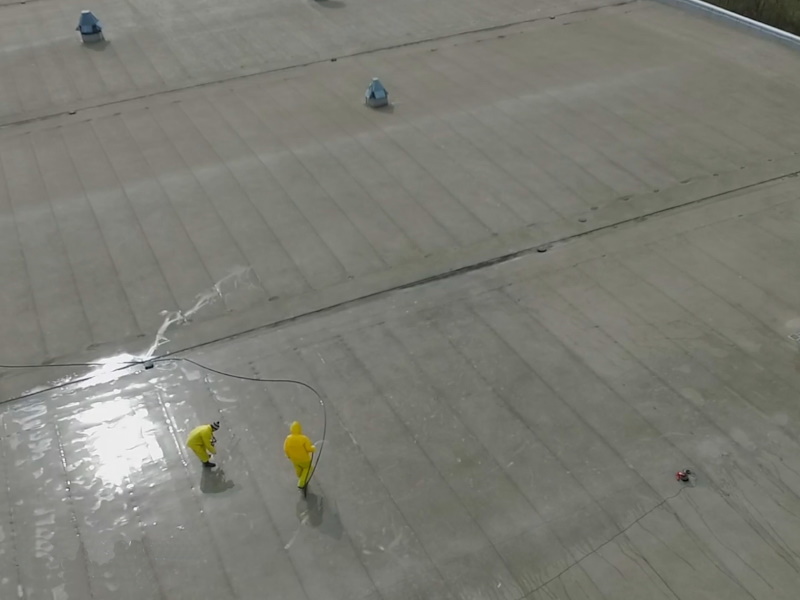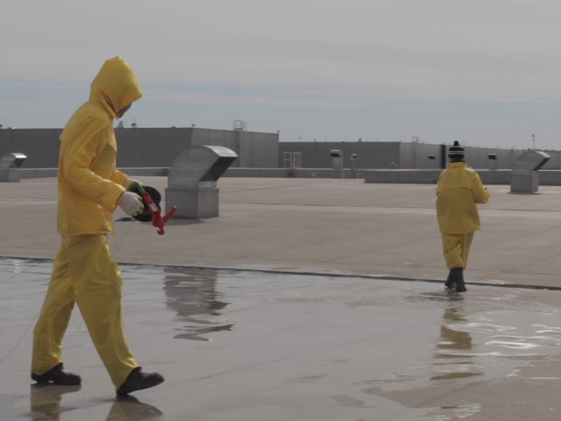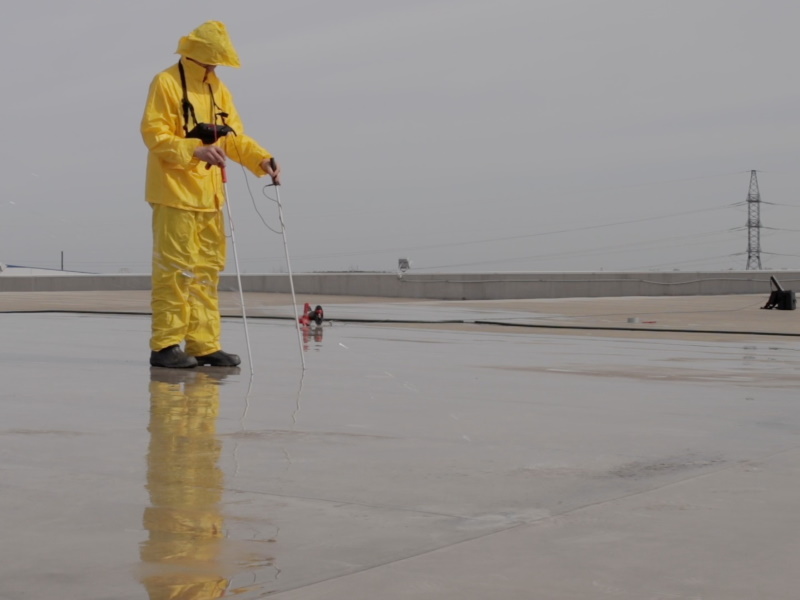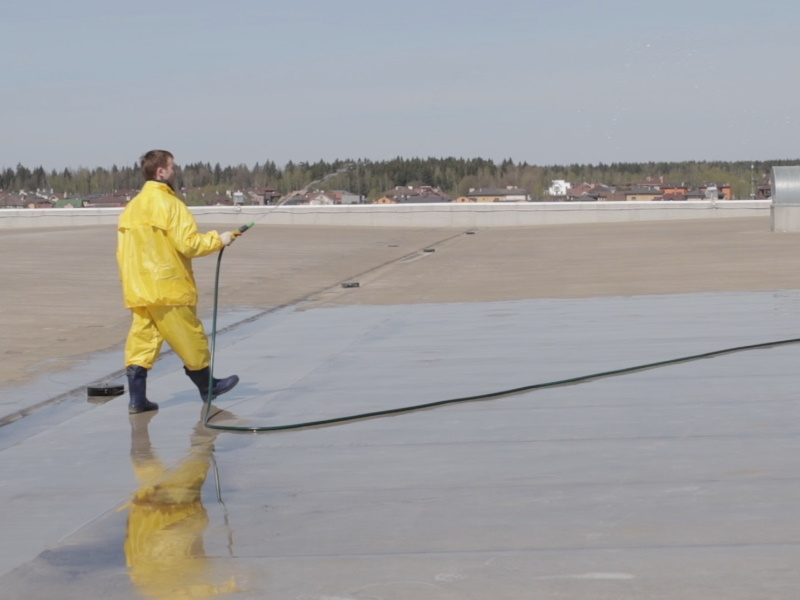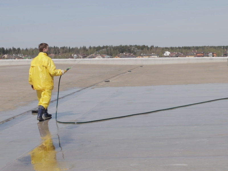• На поверхности кровли создается водяная пленка и специалист приступает к работе.