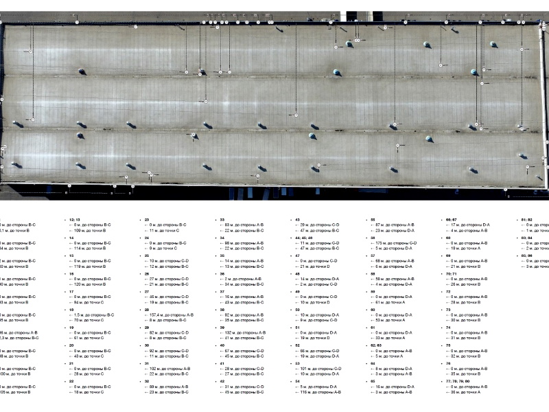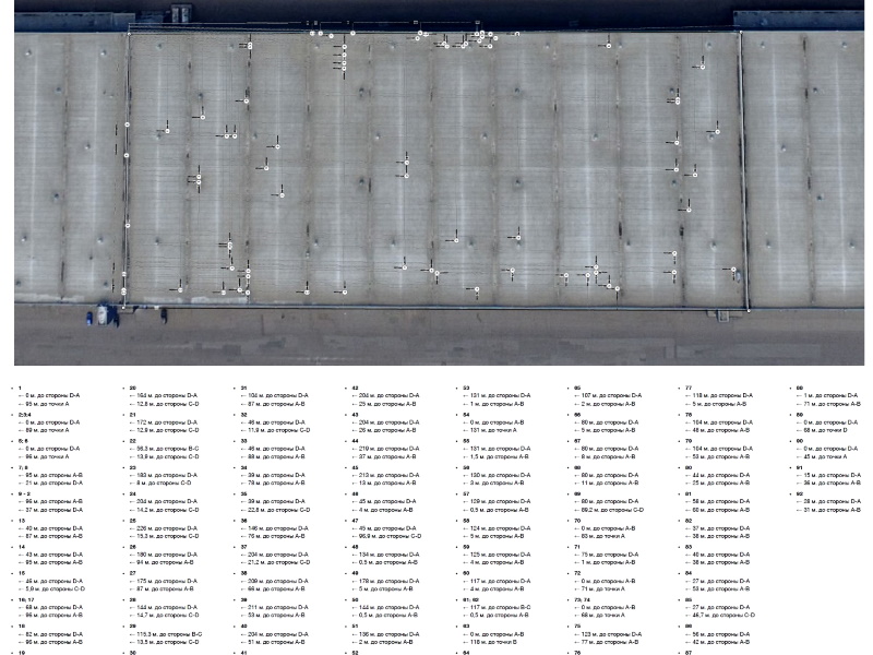 4) Карту дефектов на кровле, для руководителей и инженеров. Данный документ поможет вам при проведении точечного ремонта и при последующем (гарантийном) контроле качества ремонта.