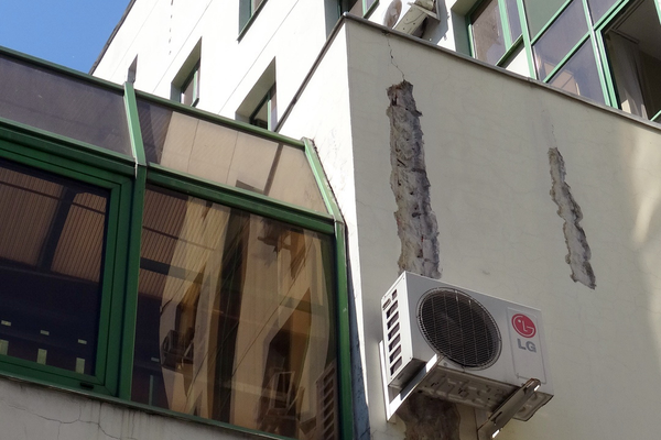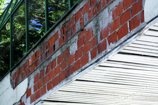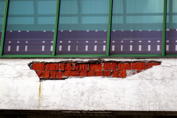 4. Разрушение цементно-песчаной штукатурки внешних стен перехода.