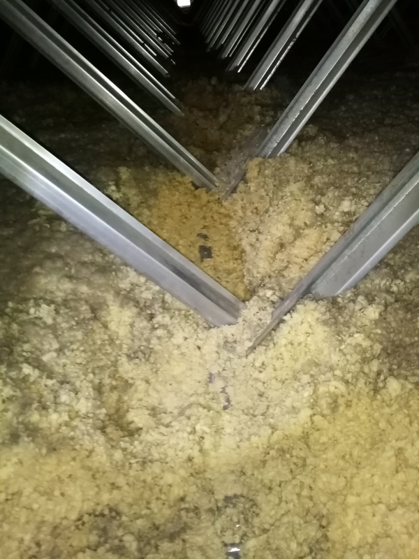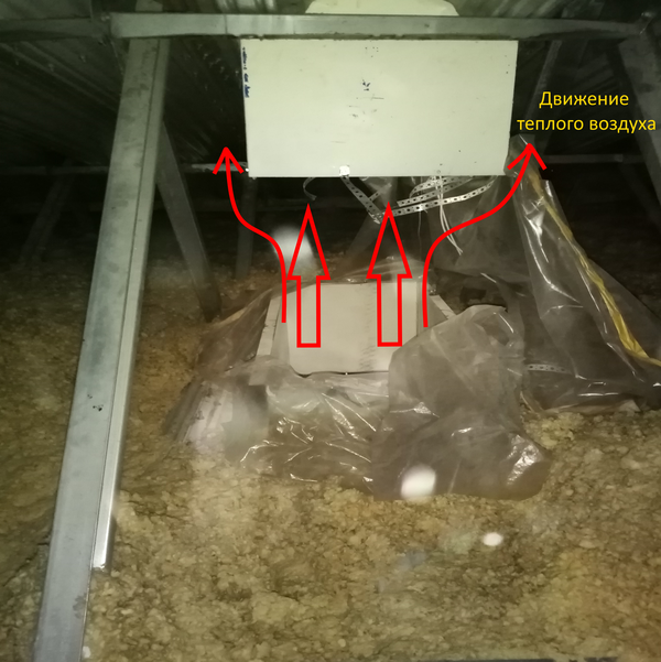 Из-за нарушения герметичности венткамеры теплый воздух беспрепятственно попадал в чердачное пространство в обход уложенной теплозащиты. Повышение температуры в чердачном помещении приводило к образованию конденсата на металлических листах кровельного покрытия, который в свою очередь скапывал вниз.